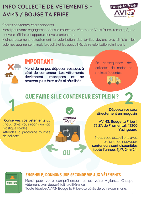 Le mardi 5 août 2025, AVI43 a vibré au rythme d’une mobilisation exceptionnelle ! Ensemble, salariés et bénévoles ont retroussé leurs manches pour charger une semi-remorque pleine à craquer : près de 16 tonnes de sacs de vêtements récoltés au fil des derniers mois.
