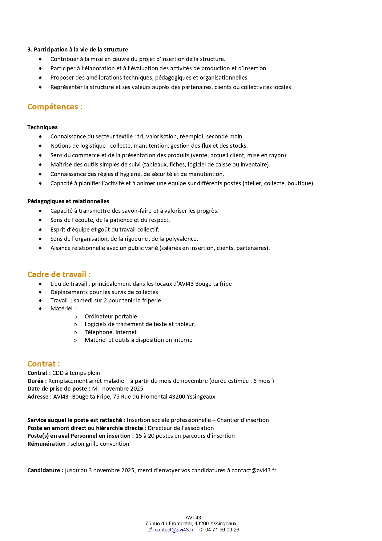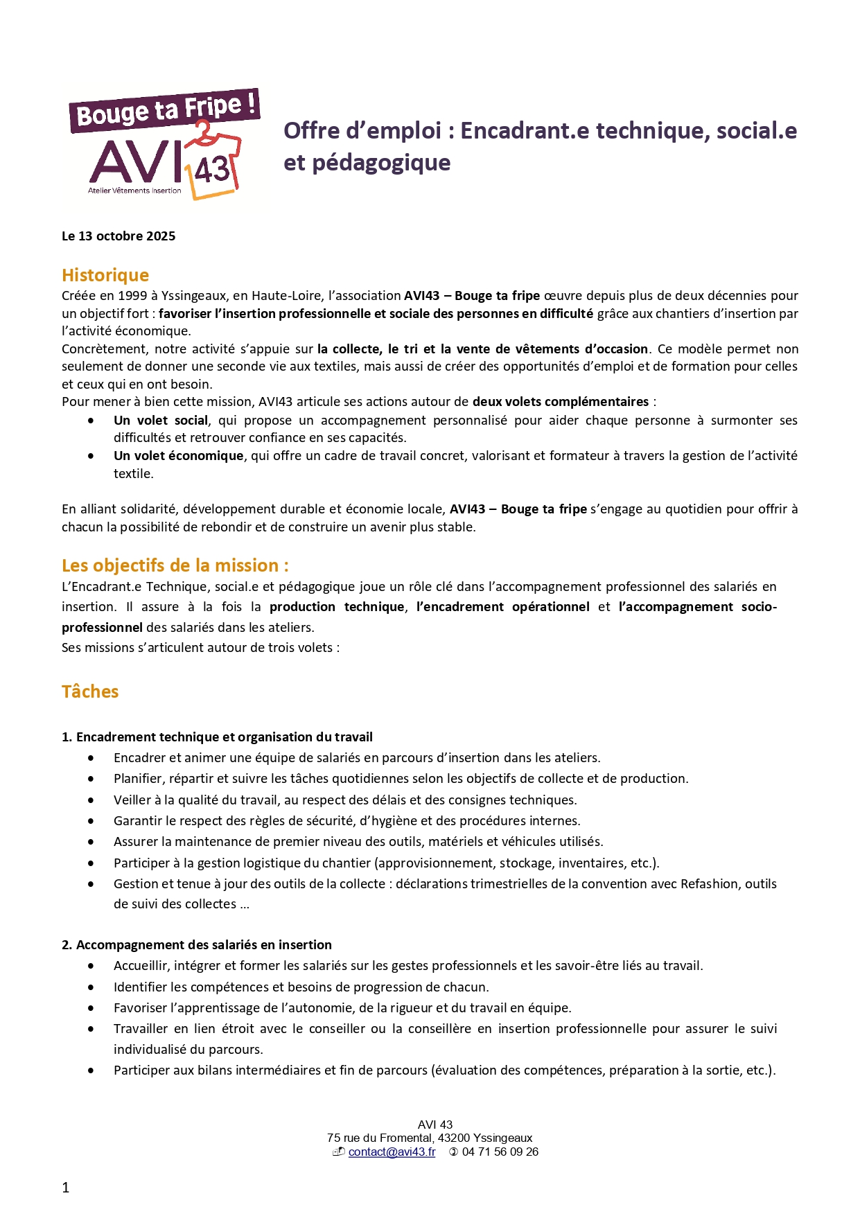 Au-delà du geste concret, cette journée a permis de renforcer les liens entre les structures locales, de partager des expériences, et de mieux comprendre les missions de chacun. Une belle illustration de ce que peut produire la mise en réseau : des relations humaines plus fortes et des actions porteuses de sens. Etaient présents à nos côtés : La Mission Locale Yssingeaux, Le Conseil Départemental 43, l'Entraide Pierre Valdo et France Travail. Merci à chacun d'avoir répondu présent !